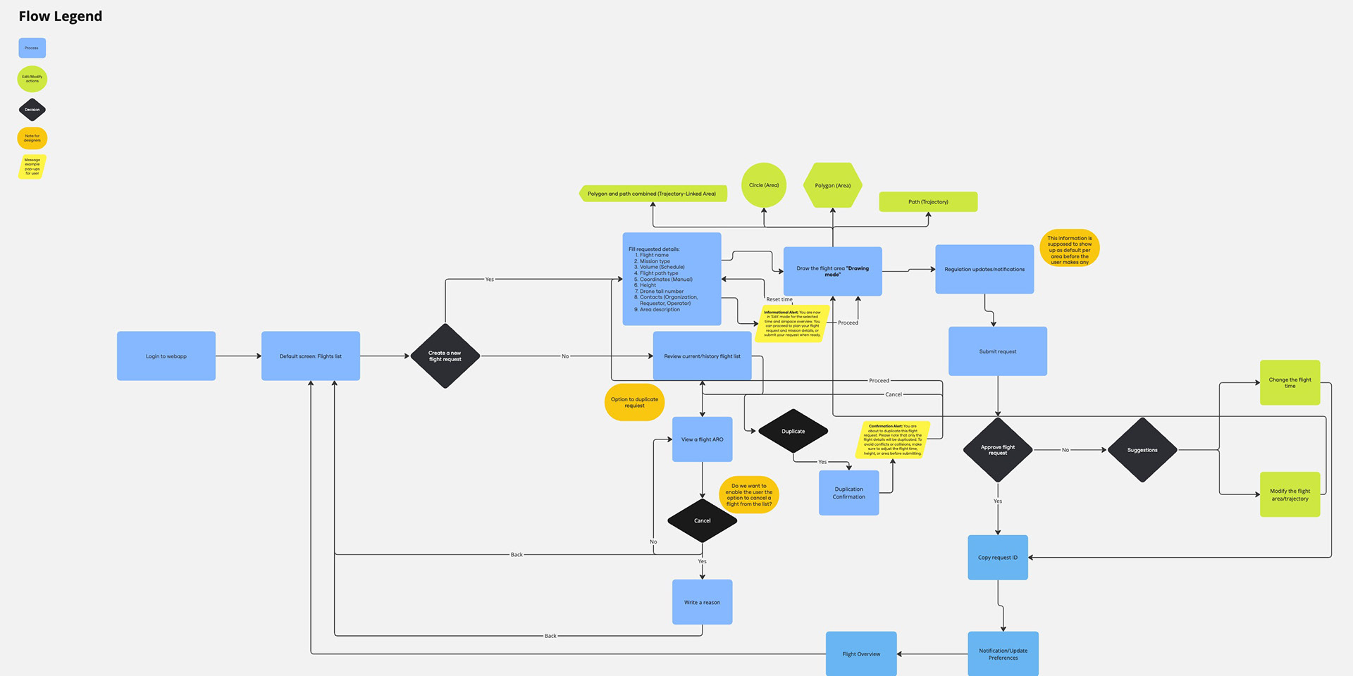 One of the main challenges was ensuring users received this information at the right moments—before starting a request, while defining their flight area, and right before submitting it. This feature was required for regulatory compliance, but it also helped addressing a key pain point: coordinating between multiple parties and improving users’ understanding of the flight zones.