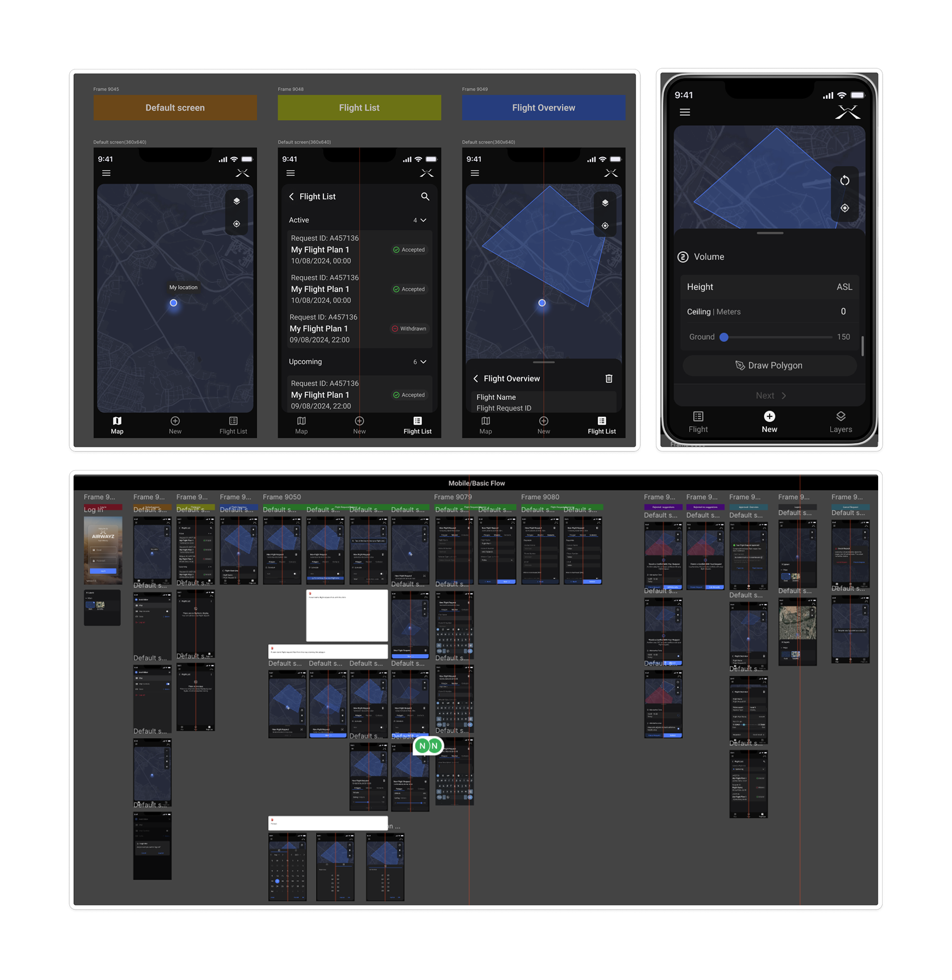 The Airplan interface was designed responsively, but many features were limited on mobile. The research highlighted a clear need for mobile access, as more than half of our users are field drone operators. During mobile design, I uncovered usability challenges, especially when interacting with the map and viewing key data. As a result, mobile was restricted to data viewing only, rather than full flight plan creation.