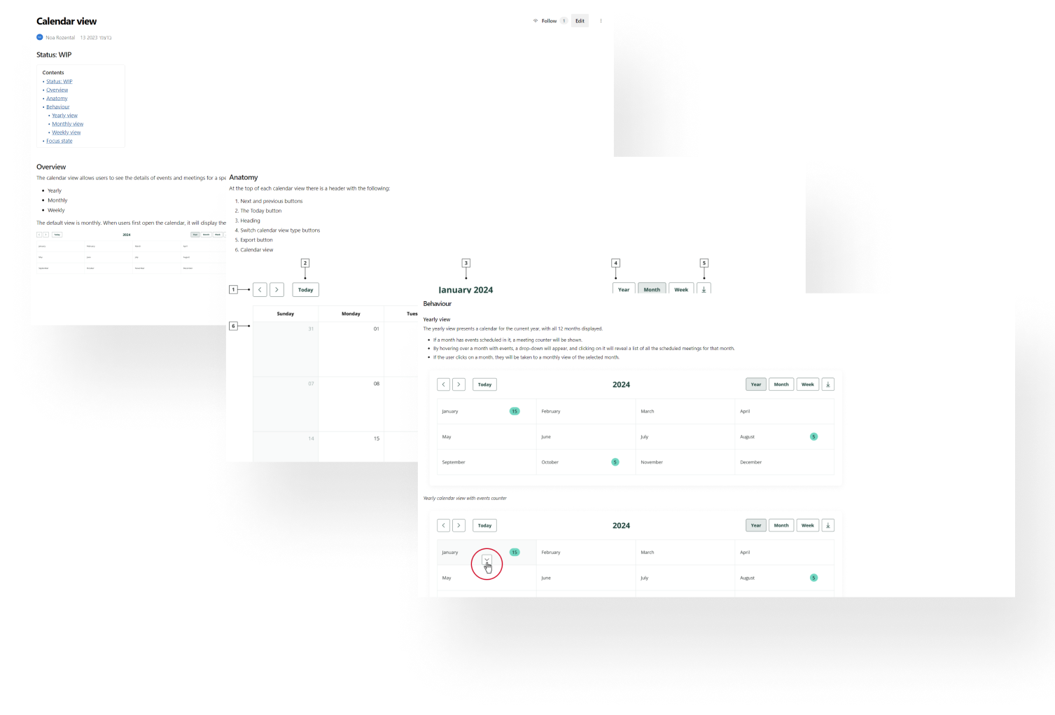usage rules, component behavior, variations, do’s/don’ts, and accessibility notes.