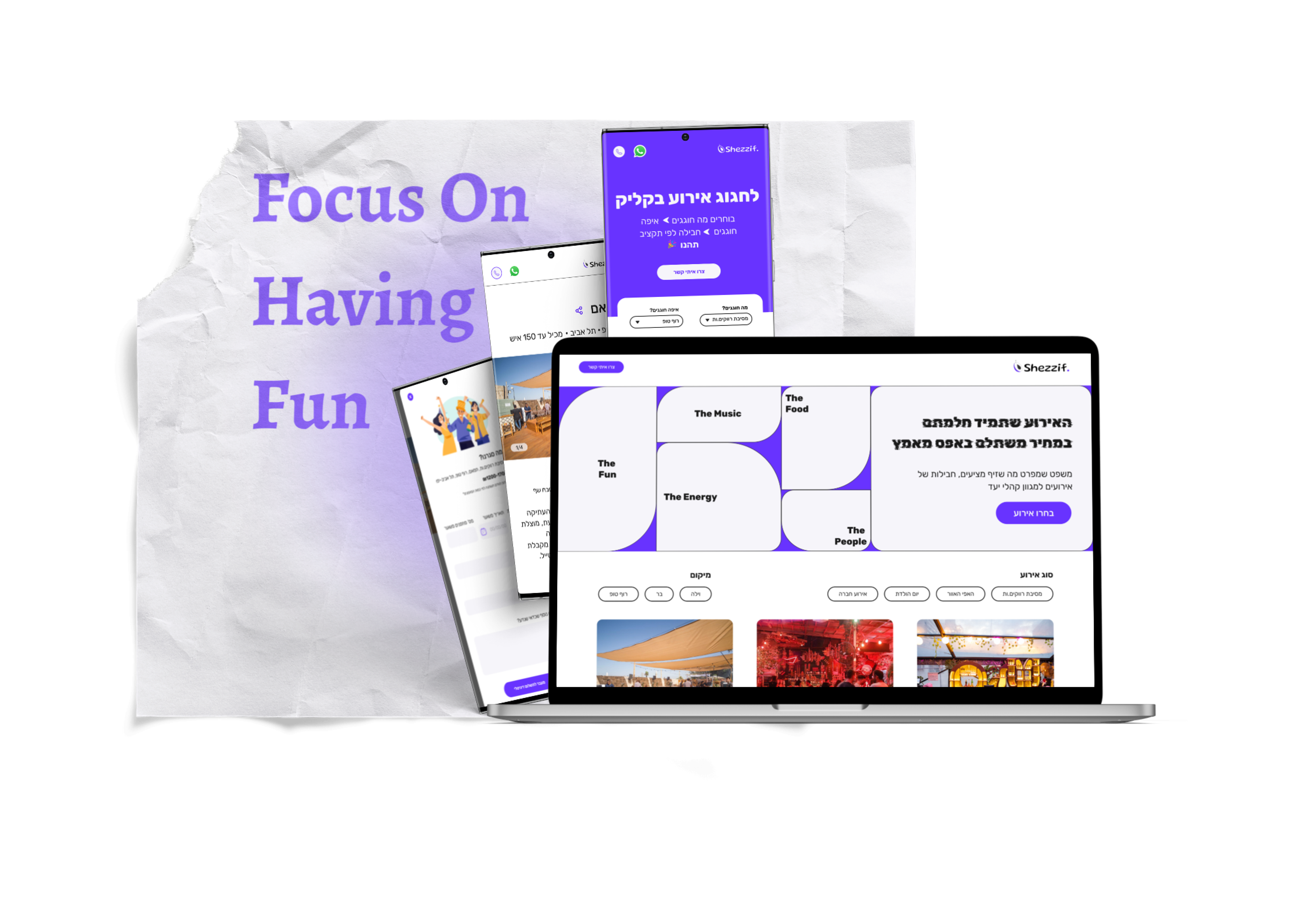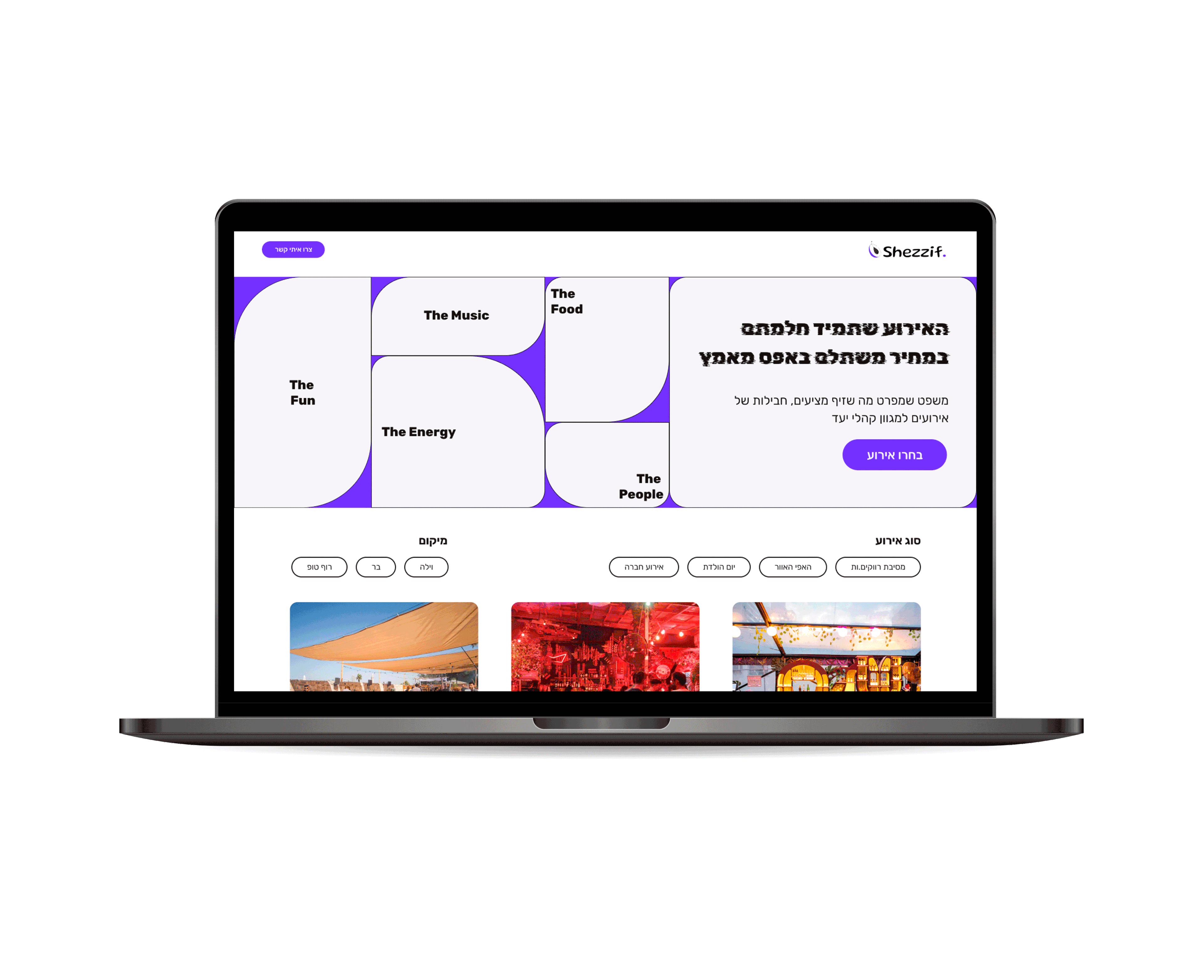 This product was designed as part of my job at `Shezzif` a small Israeli start-up in the field of entertainment and leisure. I joined the start-up as a single UI/UX Designer and my task was to design the MVP, which replaces another platform developed, based on research and wireframes the previous designer had made.