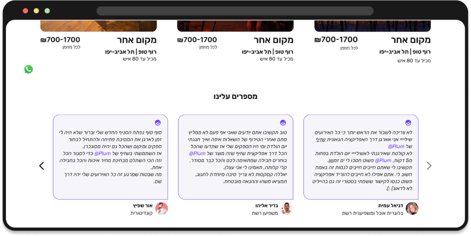 Currently, there is no platform in Israel that connects consumers with suppliers. If consumers do not have access to diverse offerings, they will avoid them. As a result, events are purchased and managed offline, making pricing less competitive. Most payments are made via traditional methods (cash, check or bank transfer) in advance of the event.